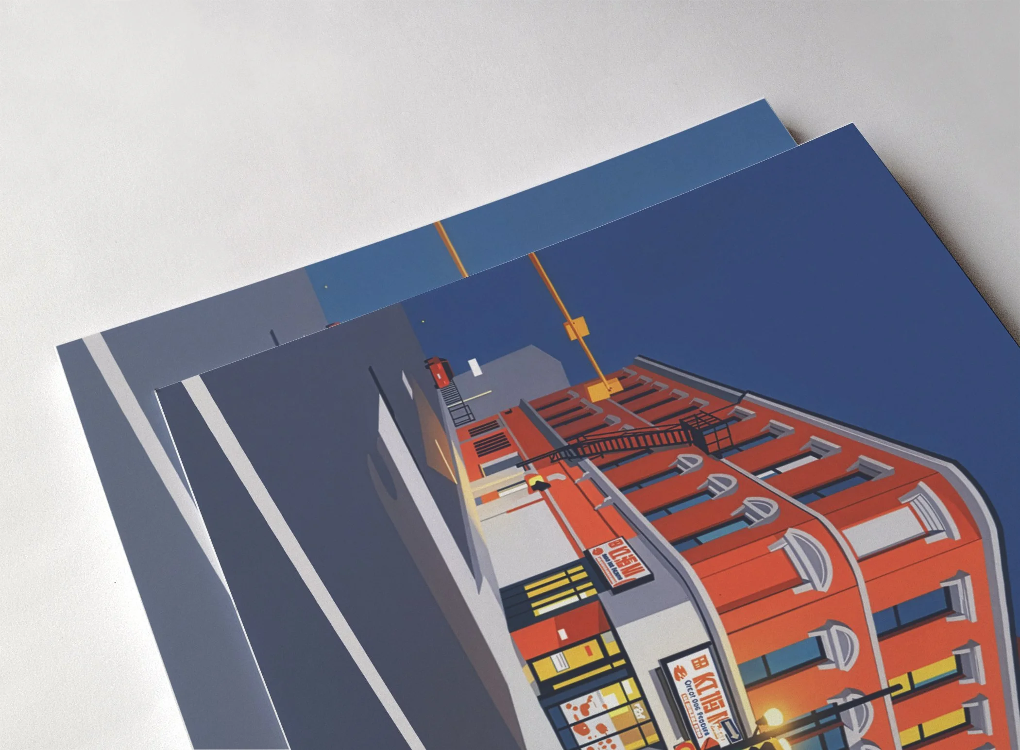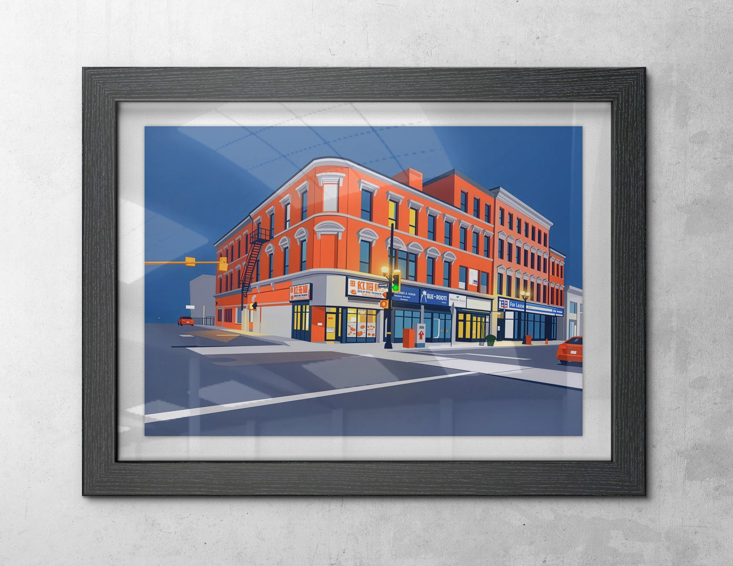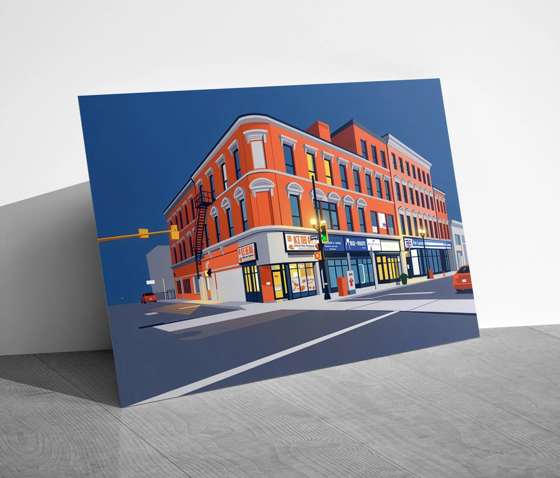 Inspired by an original photograph at the corner of James Street North and Rebecca Street, this digital artwork captures the architectural character and creative energy of one of Hamilton’s iconic downtown intersections. With bold color, clean lines, and a contemporary urban aesthetic, the piece celebrates the heritage storefronts and vibrant street life that define the spirit of James North.